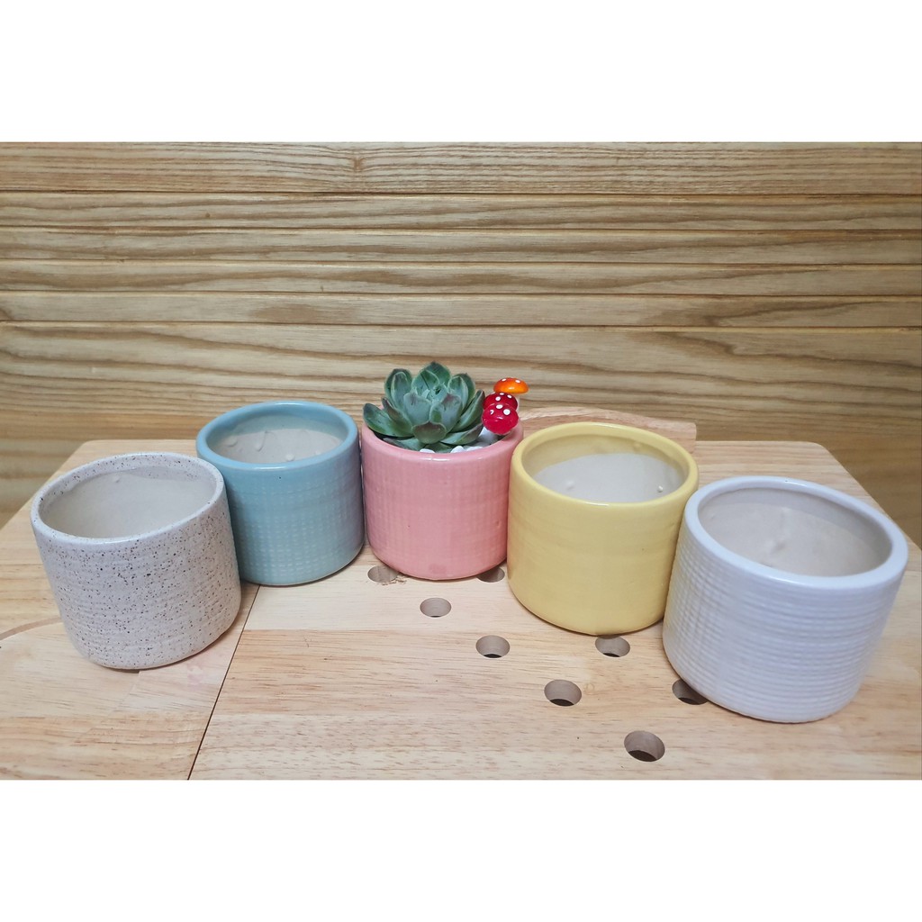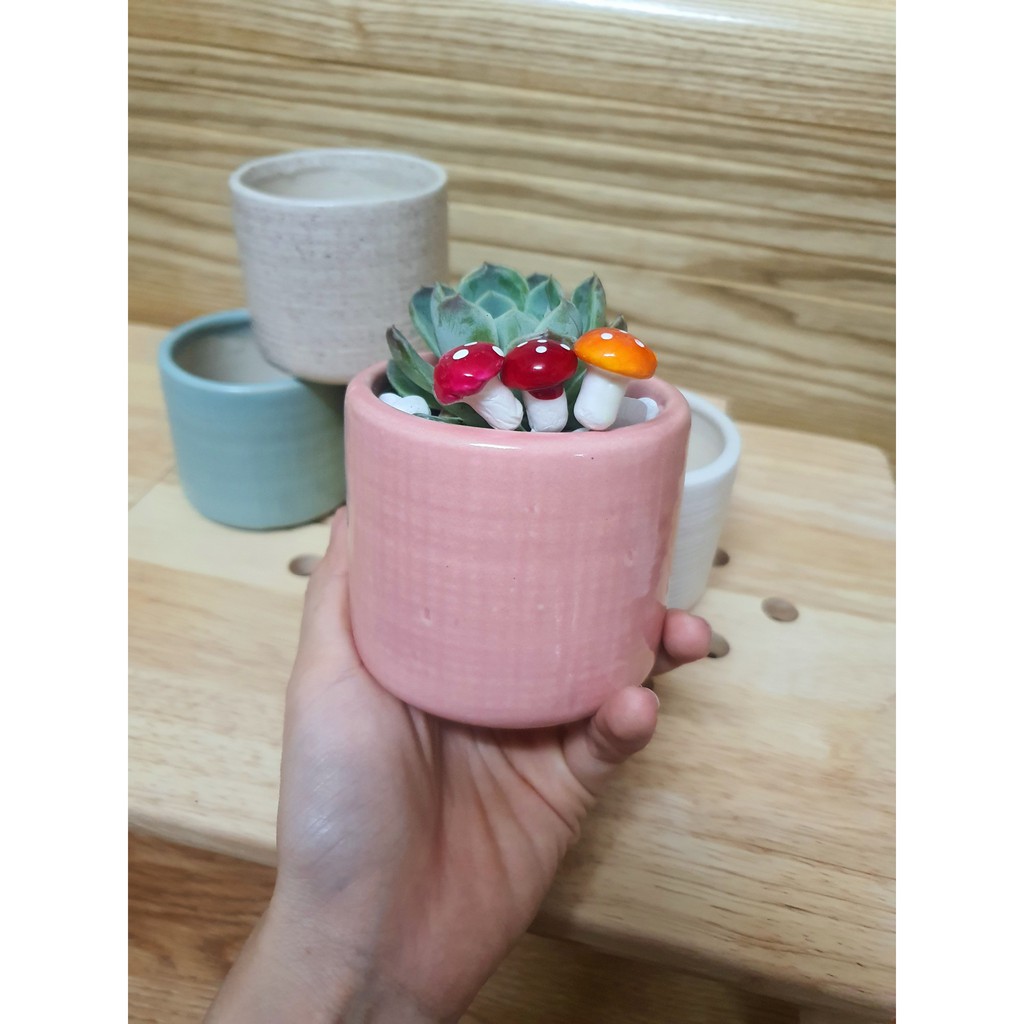 [Gốm Sứ Bát Tràng][7,5cm*7cm] Chậu trồng cây cảnh - Sen Đá - Xương Rồng - Hoa nhỏ - Kiểu vành TRỤ TRÒN