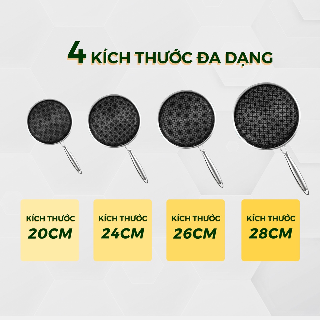Thiết kế vân tổ ong trên bề mặt chảo nâng cao khả năng chống dính.