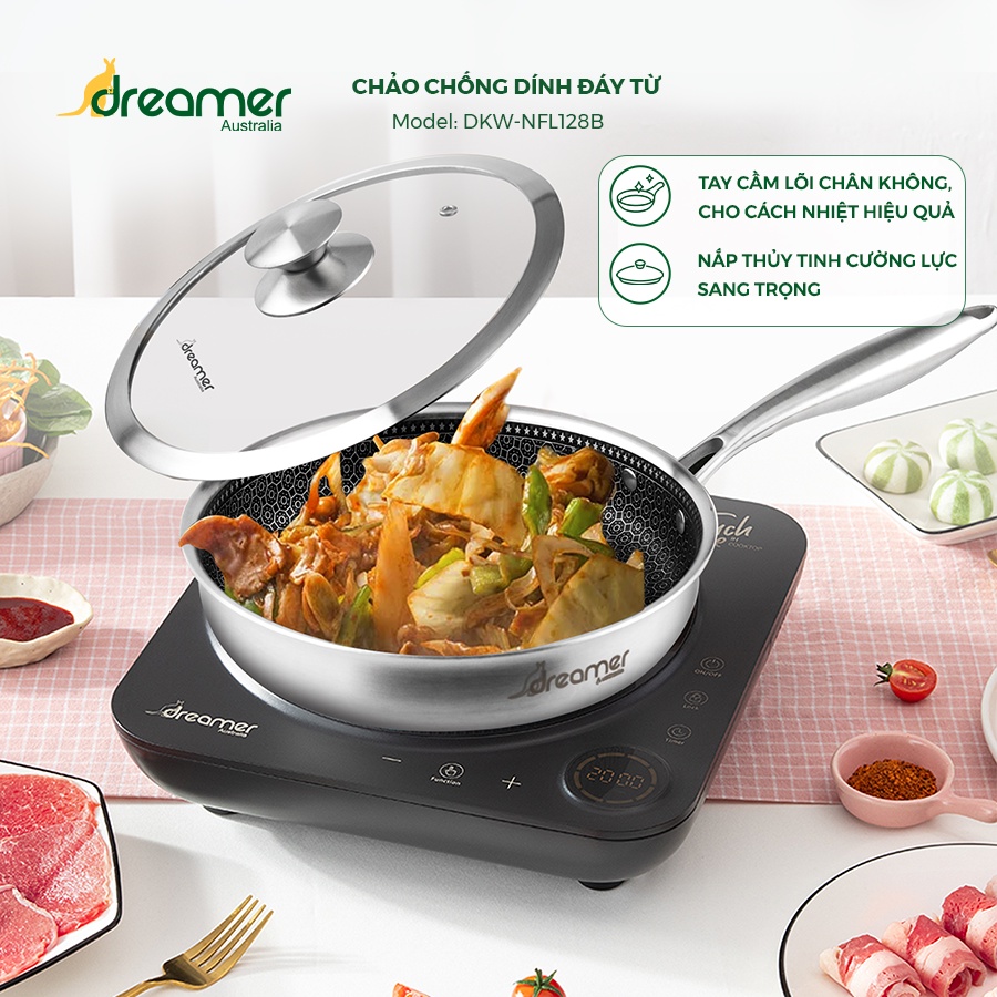 Giới thiệu [HÀNG ÚC CHÍNH HÃNG - BẢO HÀNH 5 NĂM] - Chảo Chống Dính Đáy Từ 28cm Dreamer DKW-NFL128B