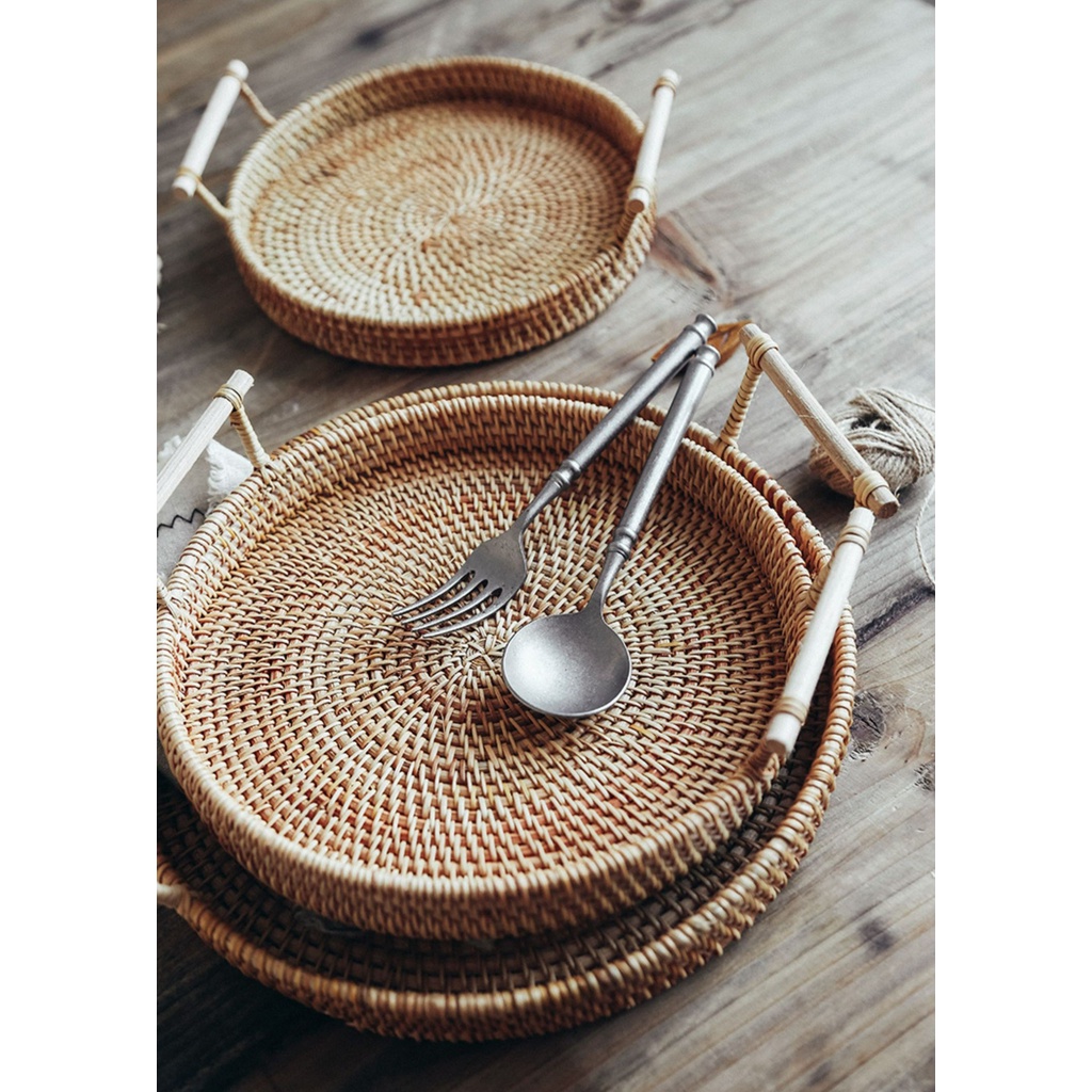 (Hàng Việt Nam) Khay mây tre đan có tay cầm, giỏ mây decor đựng đồ ăn vintage - cutam.homedecor