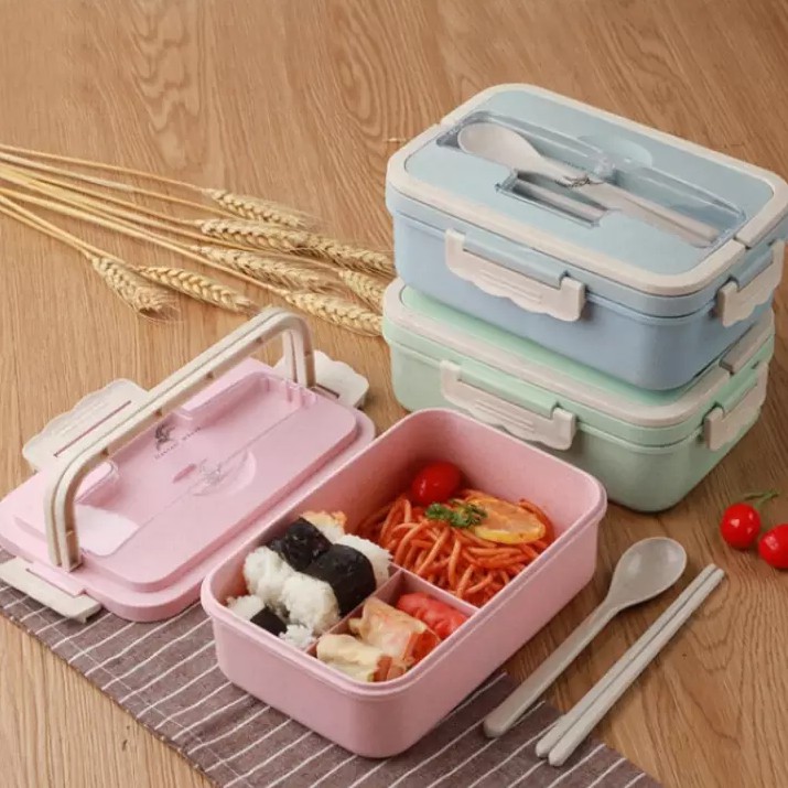 Hộp Đựng Cơm Văn Phòng 3 Ngăn Lúa Mạch An Toàn Tặng Kèm Thìa Và Đũa Có Thể Cho Vào Lò Vi Sóng Để Hâm Lại