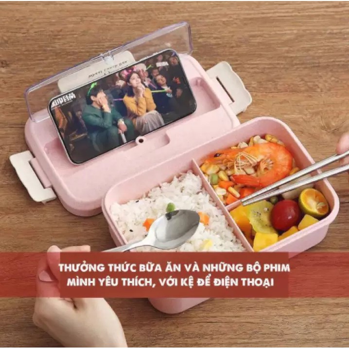 ** Hộp đựng cơm lúa mạch 3 ngăn kèm đũa muỗng inox **MÔ TẢ SẢN PHẨM