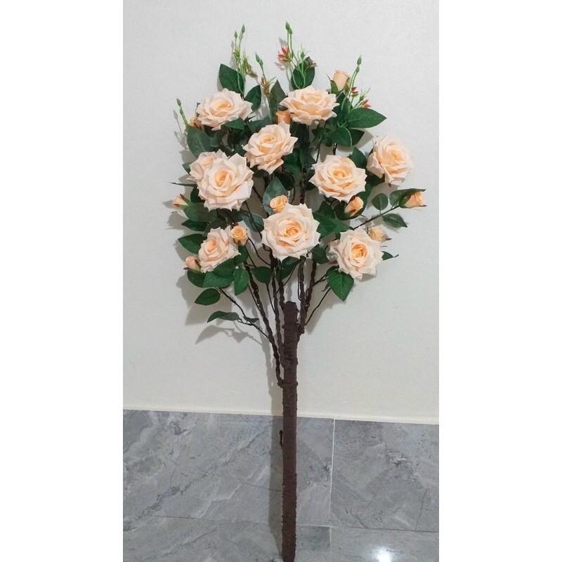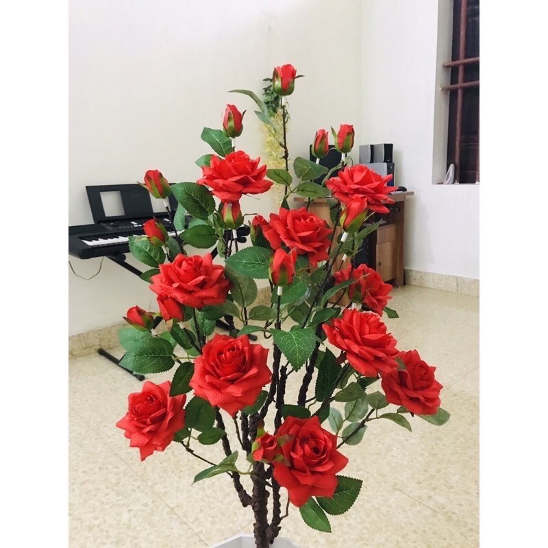 Cây hoa hồng cổ cao 1m siêu đẹpchất liệu hoa vải lụa