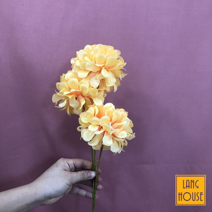 - Hoa Cúc Mâm Xôi, 1 cành 3 bông, đường kính bông 10cm.