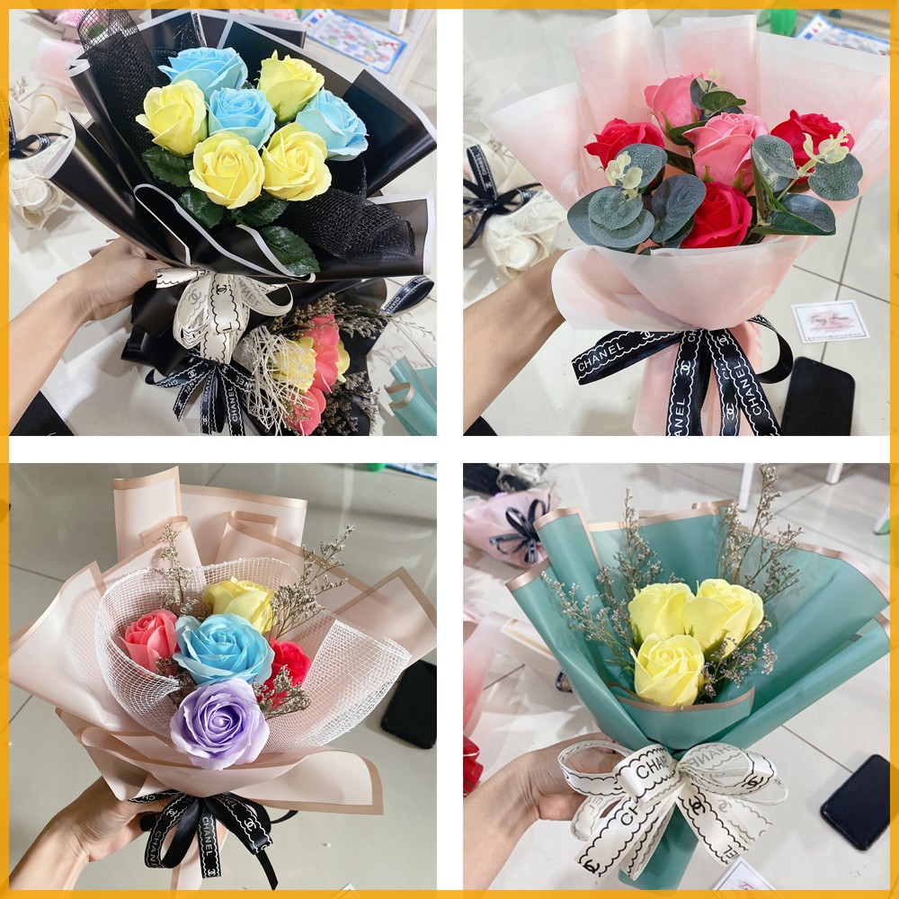 Hoa sáp - Hoa hồng sáp thơm bó ( bó 3,5,7 bông ) - Cánh hoa to và cứng cáp thơm và bền hơn