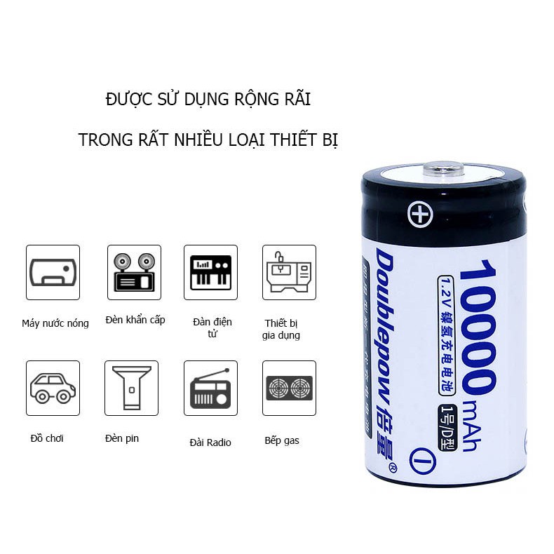 Nhà cửa & Đời sống > Dụng cụ nhà bếp > Khác || [Hộp 02 viên] Pin đại sạc lại số 1 Size D 10000 mAh Ni-Cd - Doublepow - loại cao cấp, dung lượng thựcCòn hàng