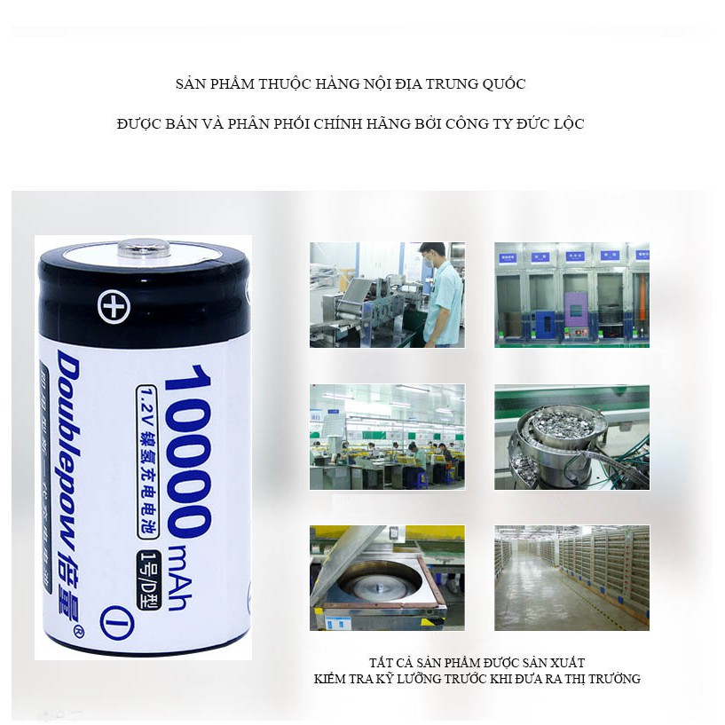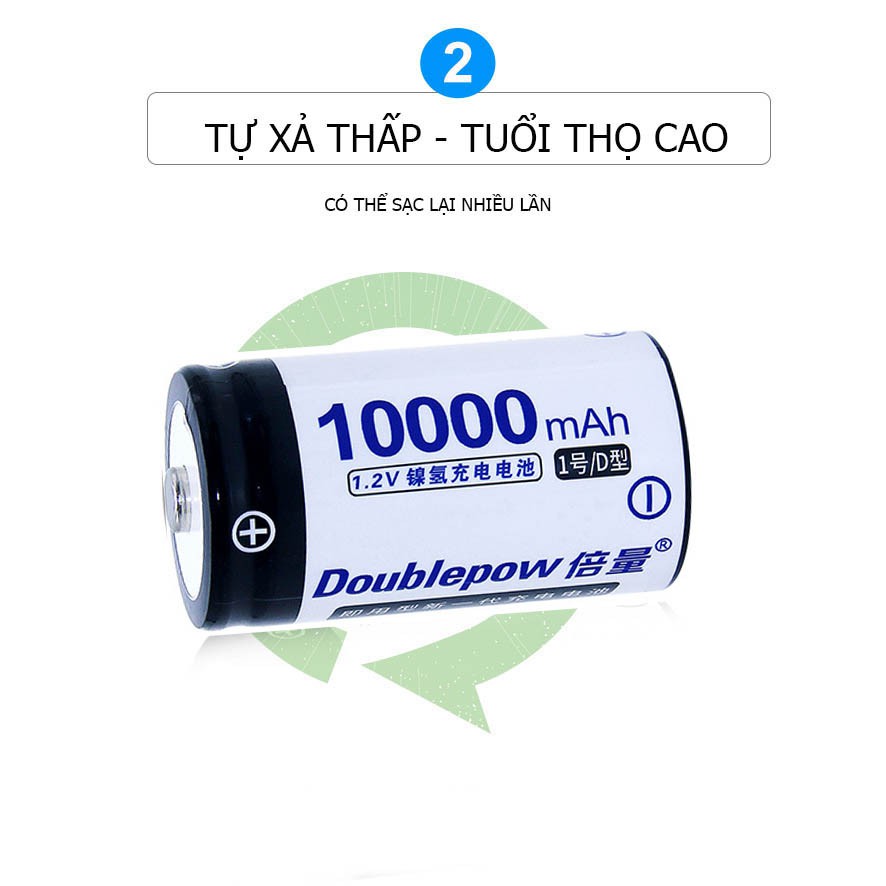 [Hộp 02 viên] Pin đại sạc lại số 1 Size D 10000 mAh Ni-Cd - Doublepow - loại cao cấp, dung lượng thực
