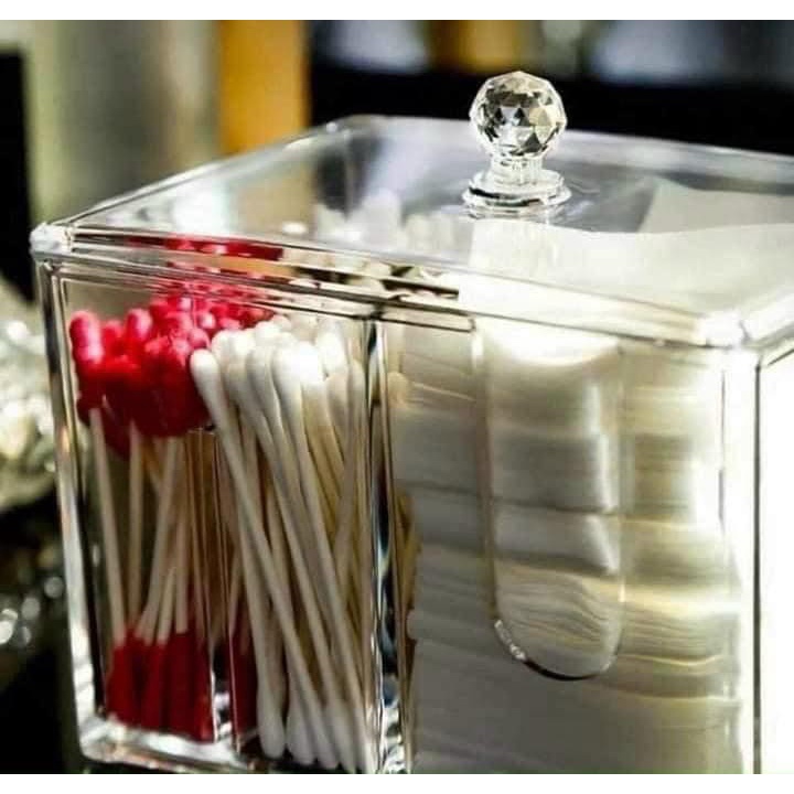 Hộp đựng bông tẩy trang và tăm bông bằng mica trong suốt có nắp đậy