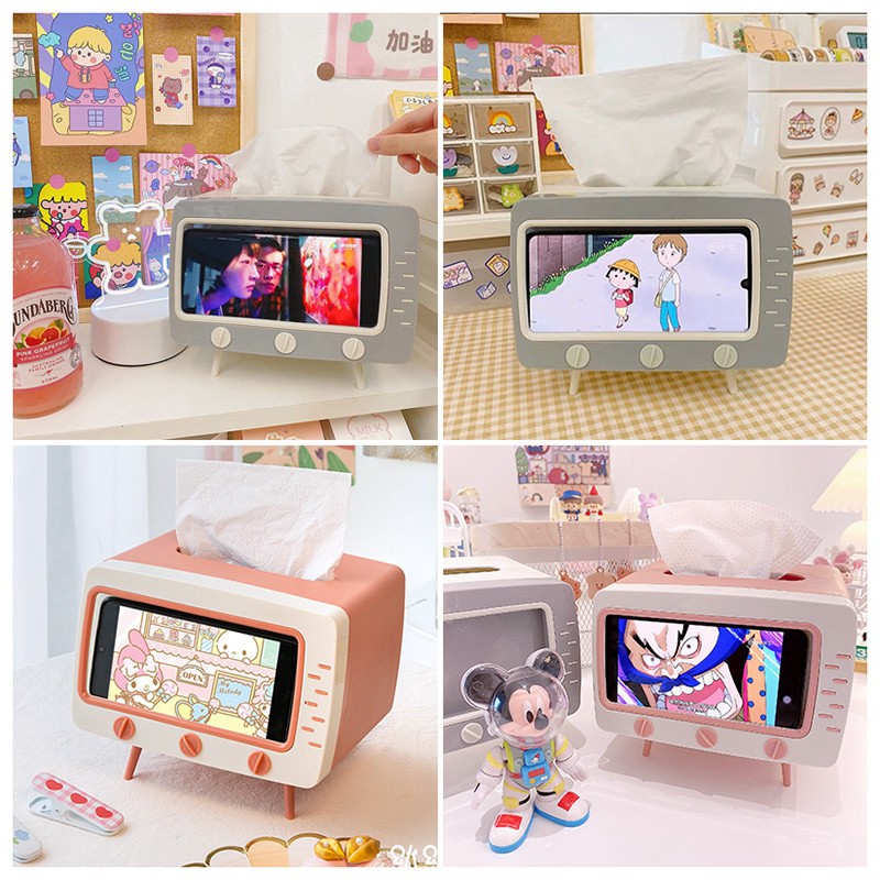 Giới thiệu Hộp đựng khăn giấy / hộp đựng điện thoại di động hình TV dễ thương