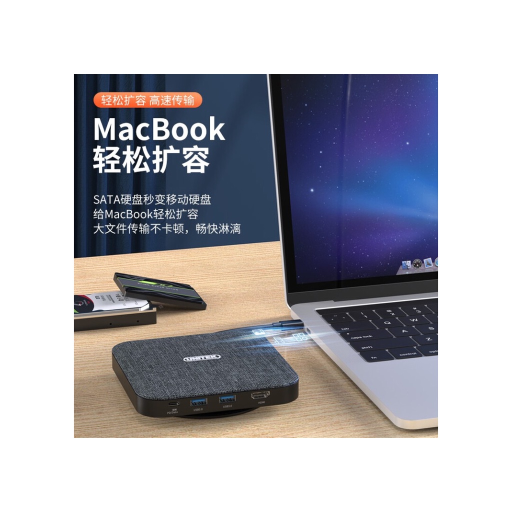 UNITEK - D032A, tích hợp các chức năng của hộp đĩa cứng + đế cắm + giá đỡ điện thoại, dễ dàng đáp ứng nhu cầu làm việc văn phòng hiệu quả trong nhiều tình huống khác nhau. Hộp đĩa cứng SATA tích hợp có thể được biến thành một đĩa cứng di động bằng cách thêm một đĩa cứng nhàn rỗi, có thể dễ dàng mở rộng dung lượng của máy tính xách tay hoặc PC. Giải pháp cầu nối USB3.0 sang SATA III, hỗ trợ giao thức tăng tốc UASP + lệnh TRIM, truyền tệp lớn không bị kẹt và mượt mà và nhỏ giọt. Giao diện HUB USB 3.0 x2, tốc độ truyền 5Gbps, đọc tệp / ảnh / video hiệu quả và thuận tiện; bạn cũng có thể kết nối các thiết bị ngoại vi như bàn phím, chuột, đĩa U, v.v., biến điện thoại hoặc máy tính bảng của bạn thành máy tính và mở một văn phòng di động mọi lúc, mọi nơi! Giao diện HDMI độ nét cao 4K, thuận tiện cho điện thoại di động kết nối với máy chiếu / màn hình và các thiết bị khác, thuận tiện cho các bài thuyết trình kinh doanh và hiệu quả hơn cho các bài phát biểu hội nghị. Đồng thời, nó cũng hỗ trợ các thiết bị Type-c như điện thoại di động, máy tính bảng và máy tính xách tay truyền TV lên màn hình, biến màn hình nhỏ thành màn hình lớn, tạo ra một rạp hát tại nhà không cần đóng cửa, và thưởng thức thời gian tốt để họp mặt gia đình.Giao diện PD sạc nhanh công suất cao 60W, MacBook đầy đủ 2,5 giờ, để đảm bảo nguồn điện không bị gián đoạn trong văn phòng; nó cũng có thể hỗ trợ truyền dữ liệu 5Gbps, giúp văn phòng hiệu quả hơn! Điều đáng nói là các giao diện chức năng khác nhau của D032A được điều khiển bởi các chip độc lập, thực sự đạt được một "lõi" và một mục đích sử dụng. Ngay cả khi nhiều cổng chạy cùng lúc, chúng có thể đạt được sự giao thoa lẫn nhau và tín hiệu ổn định mà không có độ trễ. Chân đế gấp ẩn, rảnh tay và tận hưởng cuộc sống lười biếng. Ngoài ra, các bộ phim truyền hình và phim được tải về từ điện thoại di động cũng có thể được lưu trực tiếp vào đĩa cứng tích hợp của D032A, giúp tiết kiệm không gian lưu trữ của điện thoại di động hoặc máy tính bảng. Hình chữ nhật bo tròn có vẻ ngoài thoải mái, không chỉ mang lại cảm giác tinh tế về thị giác mà còn đảm bảo cảm giác cầm nắm thoải mái; giao diện có khoảng cách rộng rãi để thiết bị kết nối không bị chặt chẽ; bề mặt là vải Oxford chống thấm và chống ẩm, thoáng khí và cách nhiệt, không nóng; rỗng Các lỗ tản nhiệt thúc đẩy tiếp xúc với không khí, tăng tốc độ tản nhiệt và tạo điều kiện truyền dữ liệu. Thiết kế vòng cao su chống trượt phía dưới giúp tăng độ ma sát giúp máy đứng vững trên máy tính để bàn, được trang bị dây cáp 65cm và được trang bị khay chứa cuộn ẩn, có thể co giãn thoải mái và có thể kết nối linh hoạt với nhiều thiết bị khác nhau Đồng thời, bàn làm việc gọn gàng, ngăn nắp. Ngoài ra, đèn LED dịu nhẹ thông minh, luôn bật khi bật nguồn, nhấp nháy khi đọc và viết.