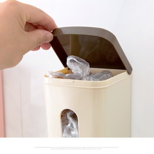 Hộp Đựng Túi Nilon, Túi Rác Dạng Rút Dán Tường Màu Sắc Trang Nhã - Tặng Kèm Móc Dán