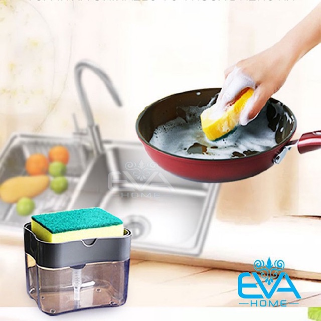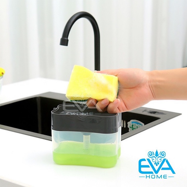 Giới thiệu Hộp Đựng Xà Phồng Nước Rửa Chén Bát Có Vòi Bơm Tự Động Tiện Dụng Tặng Kèm Miếng Bọt Biển Rửa Bát
