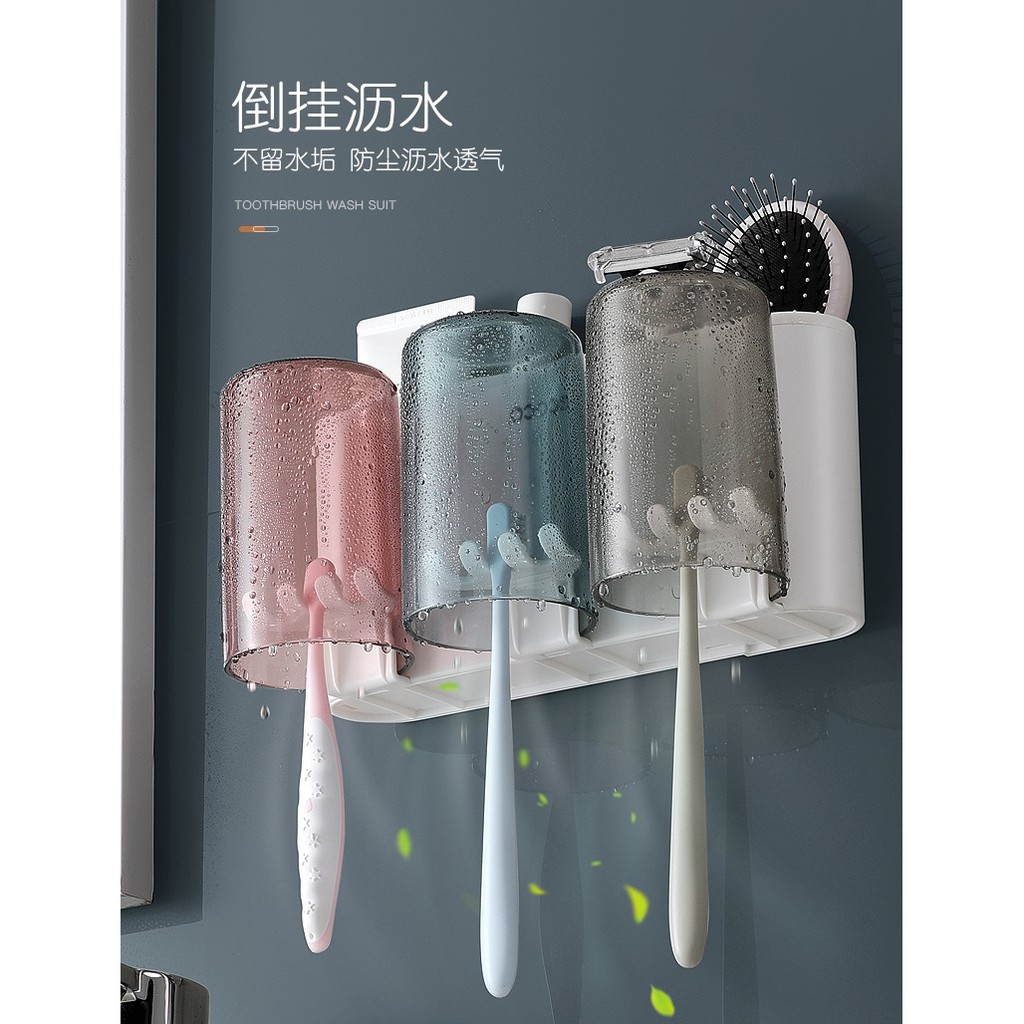 Kệ để bàn chải và kem đánh răng kèm 3 cốc trong suốt E1925
