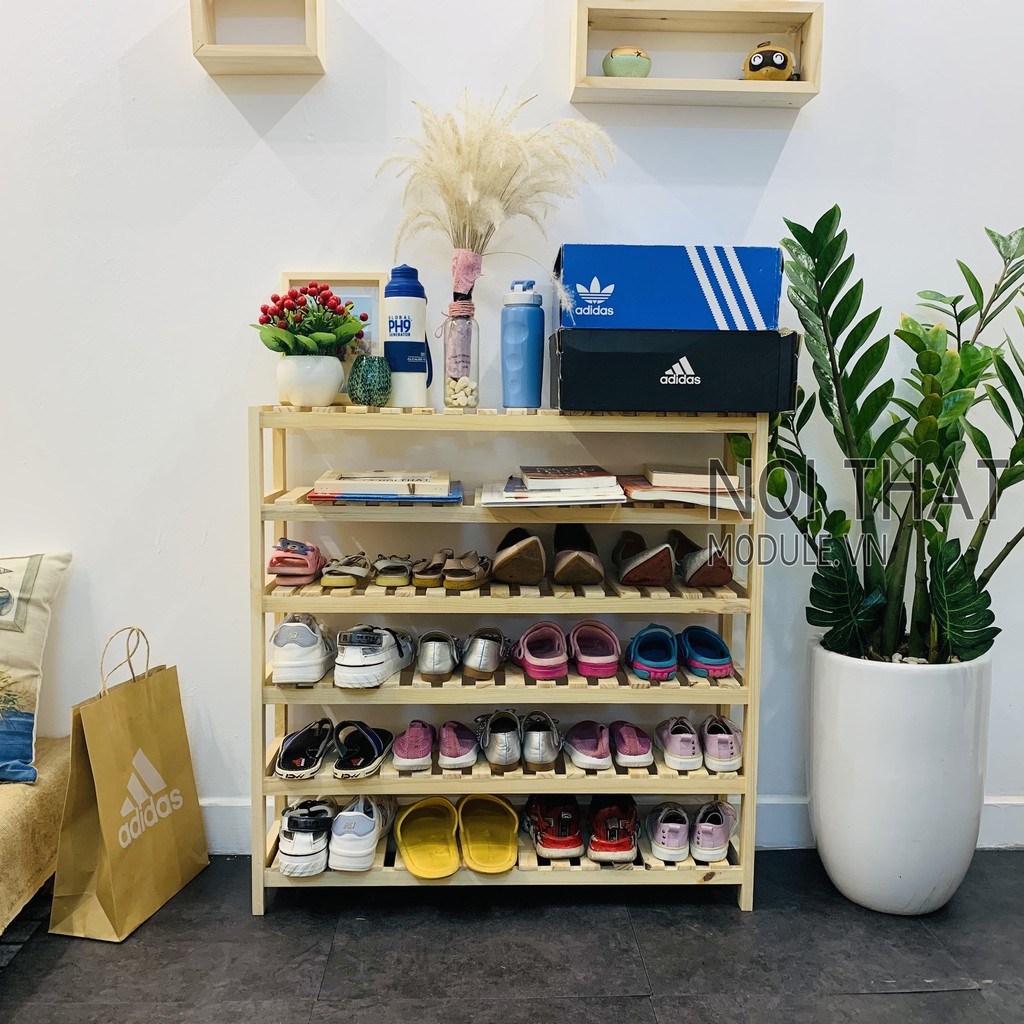 Kệ để giày dép 6 tầng lắp ghép gỗ thông tự nhiên kích thước 80cm