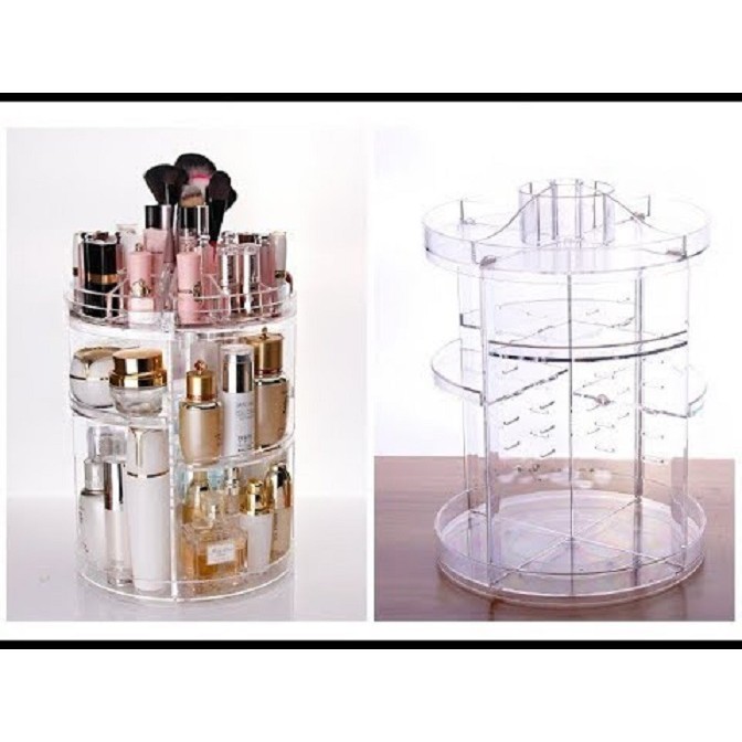 Kệ Đựng Mỹ Phẩm Xoay Tròn 360 Độ Tiện Dụng có nhiều ngăn đựng chuyên dụng có kích thước khác nhau giúp bạn có thể đựng và bảo quản lên tới cả trăm loại đồ trang điểm cá nhân vô cùng tiện lợi như: kem dưỡng, kem nền, nước hoa hồng, xịt khoáng, cọ trang điểm, son,……. Tất cả đều có thể được xếp gọn trong 1 chiếc khay mỹ phẩm nhờ đó tiết kiệm phần lớn thời gian cho bạn mỗi khi phải ngồi xếp đồ cũng như tiết kiệm không gian bàn trang điểm cho bạn. Bạn chỉ việc xoay 1 vòng, lần lượt những mỹ phẩm bạn cần tới sẽ có mặt ngay ở trước mặt bạn.