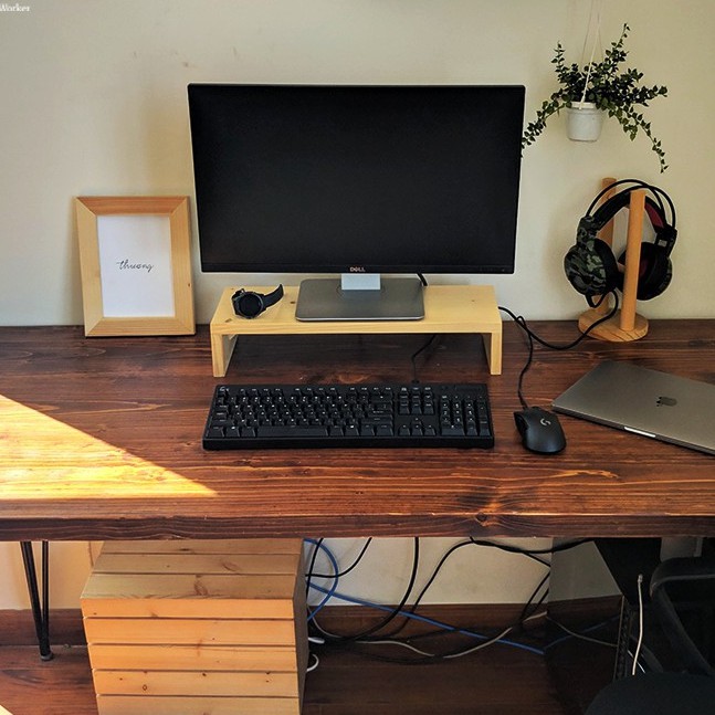 Kệ gỗ thông để màn hình sẽ xoá bỏ mọi sự khó chịu của bạn trong vòng 30 giây. Kệ màn hình Monitor Stand giúp nâng độ cao của màn hình lên để khi làm việc bạn luôn ngồi thẳng theo đúng tỷ lệ an toàn cho cột sống; ngoài ra nó còn là nơi để cất các Keyboard và Mouse khi bạn cần không gian để viết, vẽ, thiết kế và làm việc khác,..