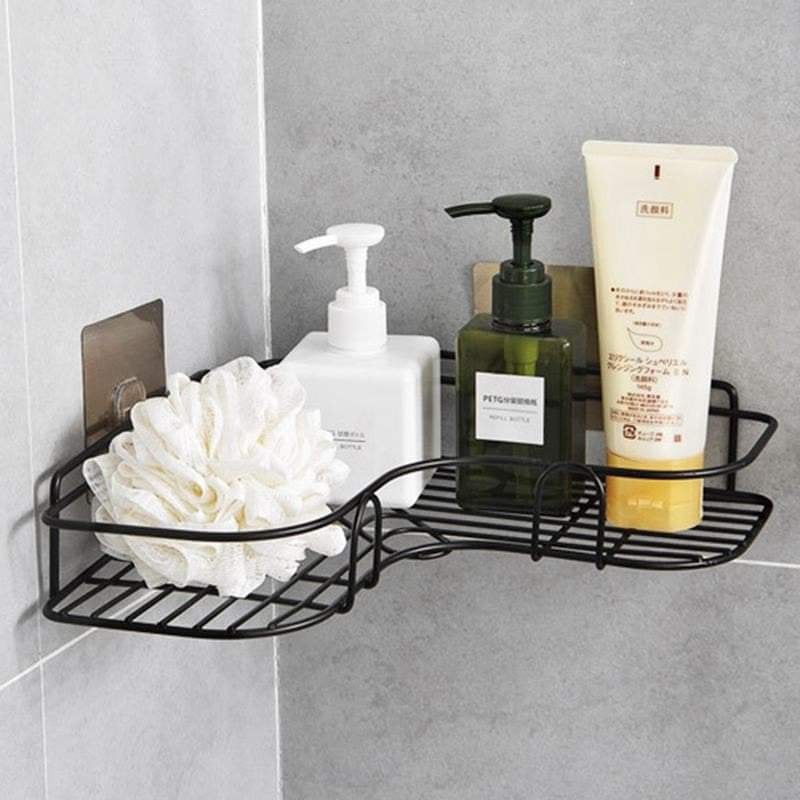 KỆ GÓC INOX DÁN TƯỜNG ĐEN VIỀN UỐN LƯỢN TIẾT KIỆM KHÔNG GIANKệ góc, Giá đỡ treo dán góc tường dễ dàng tháo lắp nơi phòng tắm, nhà bếp, phòng ngủ đựng mỹ phẩm, gia vị.