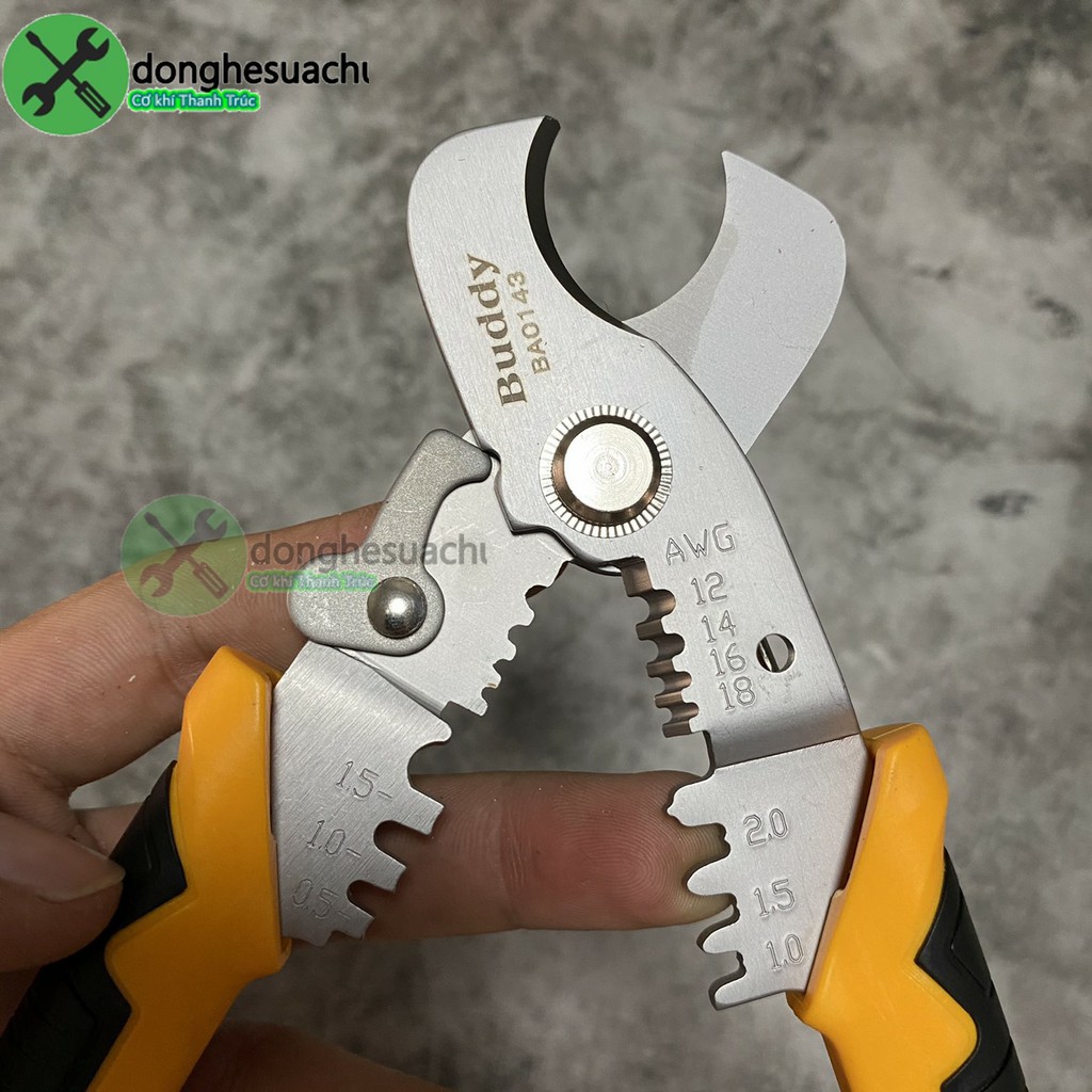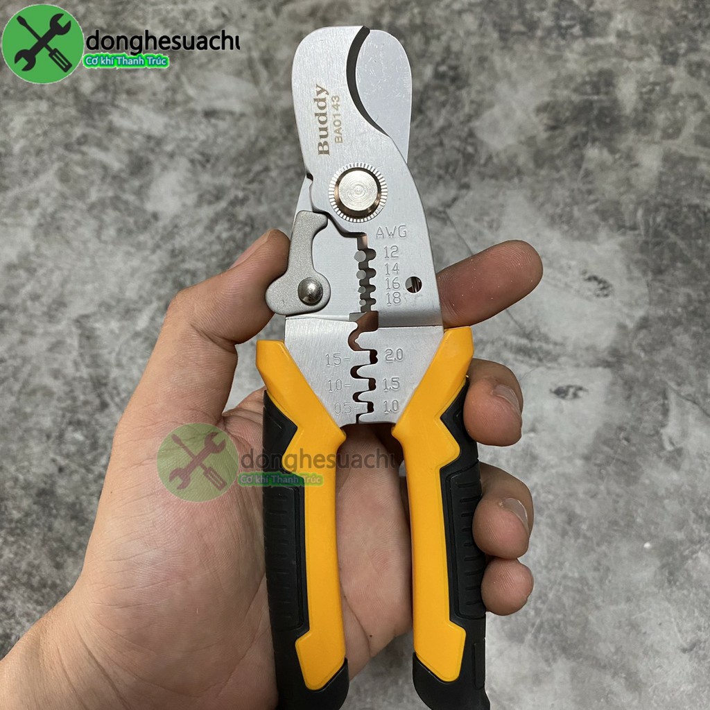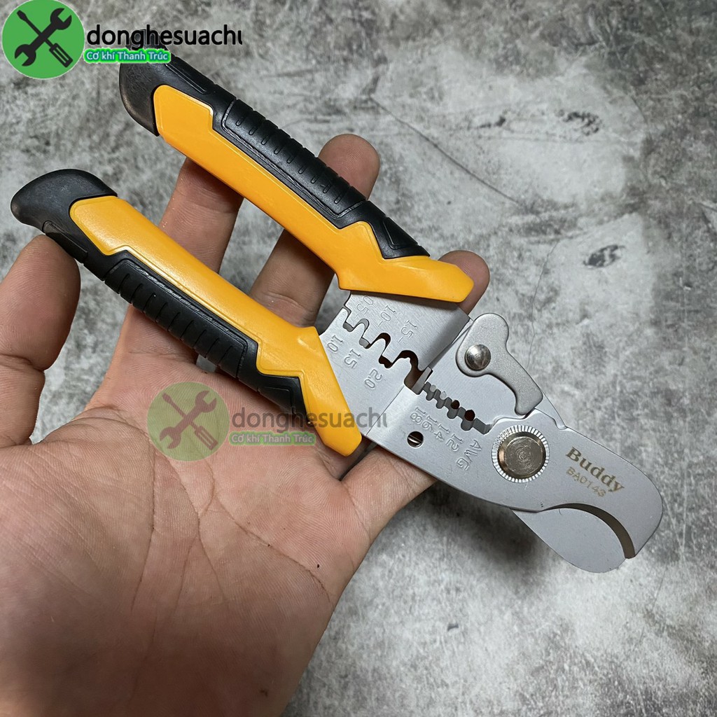 Kềm đa năng buddy BA0143 175mm nhưng đem lại cho chúng ta 3 chức năng: cắt - tuốt - bấm cos. Với chiếc kìm đa năng chúng ta sẽ làm việc một cách chuyên nghiệp hơn, nhanh hơn, tiết kiệm thời gian cũng như chi phí.Đặc biệt: Là một trong những thương hiệu được sản xuất trên công nghệ Nhật Bản được sản xuất tại Đài Loan với sự giám sát chặc chẽ từ các chuyên gia NHẬT nên luôn đem lại sự tối ưu cho người dùng