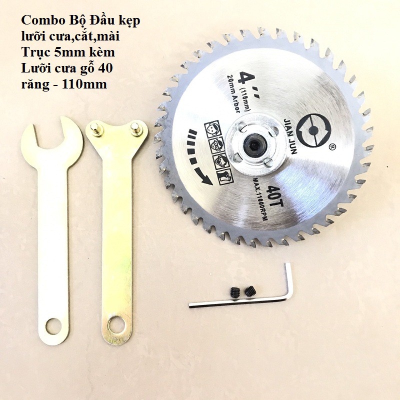 Bộ kẹp lưỡi cưa,cắt,mài M10 lỗ 5mm dùng cho motor 775 kèm lưỡi cưa 40 răng
