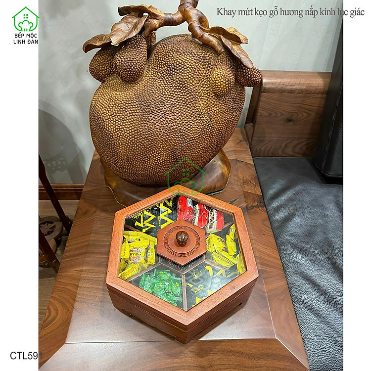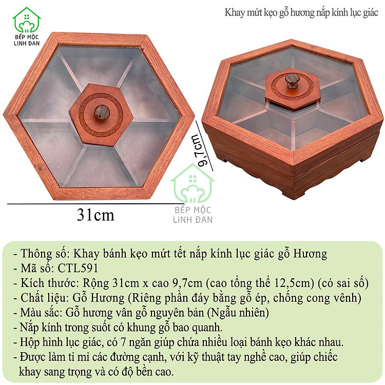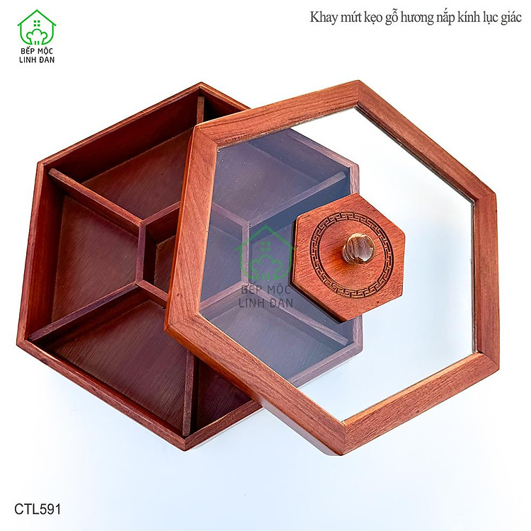 Giới thiệu Khay gỗ Hương đựng bánh kẹo, mứt tết - Nắp kính hình lục giác, mẫu mới nhất - CTL591