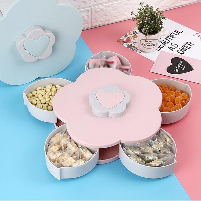 ❤Khay Đựng Mứt Bánh Kẹo Tết Nở Hoa 1 Tầng 5 Ngăn Tự Xoay Đa Năng - Có Giá Đỡ Điện Thoại