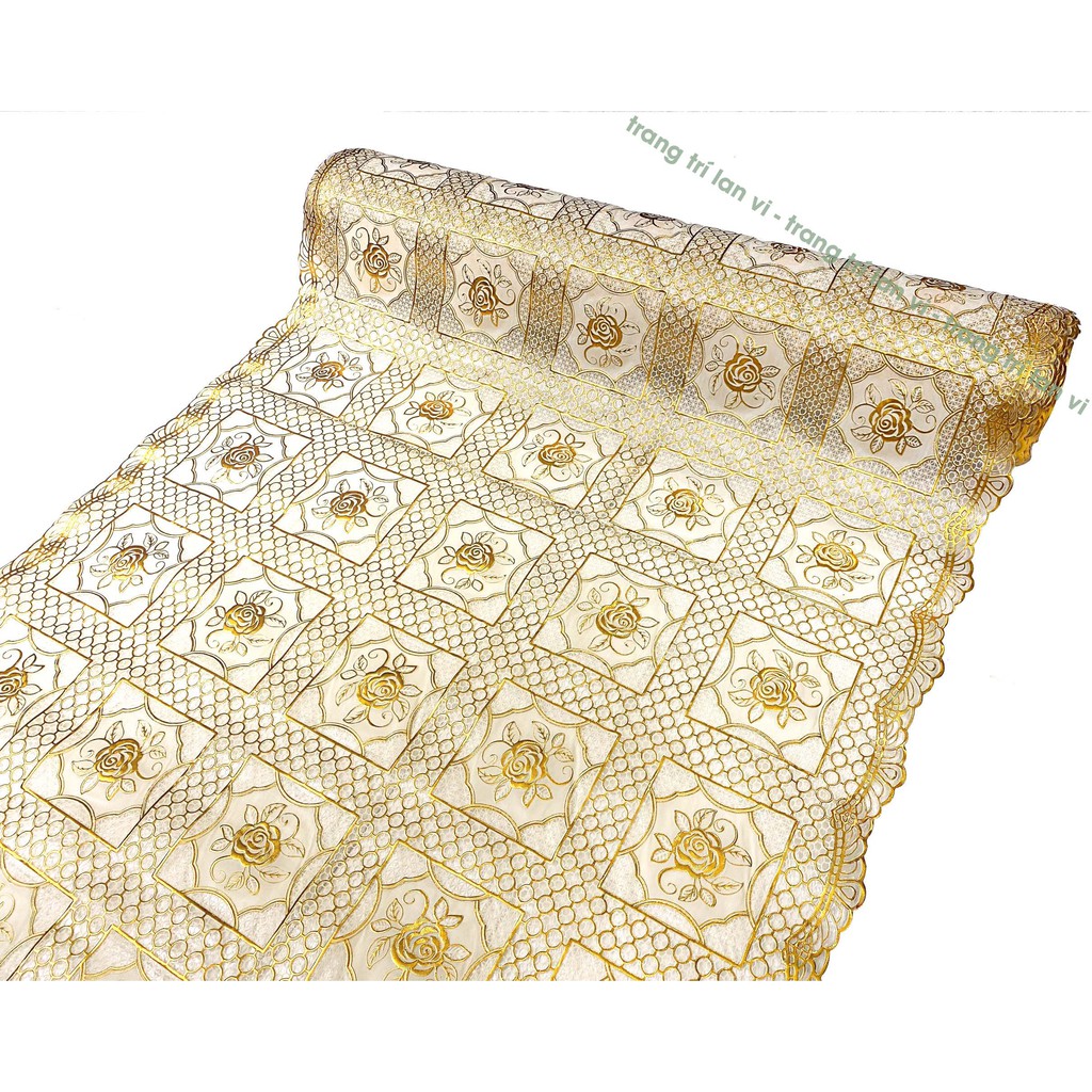Giới thiệu [KHỔ 66CM] Khăn trải bàn bằng nhựa hoa văn vàng nổi, không thấm nước