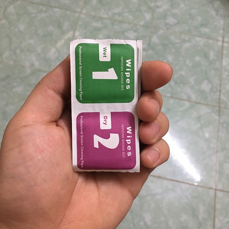 Vệ sinh sạch màn hình bằng khăn hoặc 2 miếng giấy ướt và khô đánh dấu số 1,2 kèm theo.