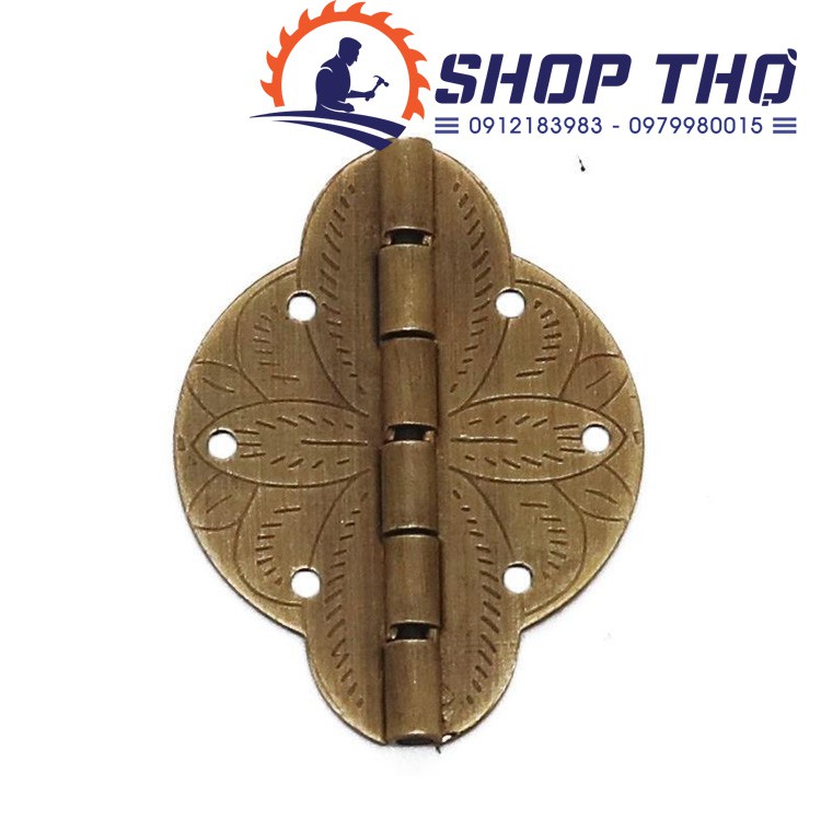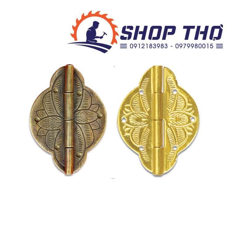 - Là bản lề đẹp, dầy dặn, in hoa văn đẹp sắc nét, thường được dùng cho các hộp gỗ trang trí, có giá trị cao, giá bán đã kèm theo đinh vít cùng mầu với bản lề