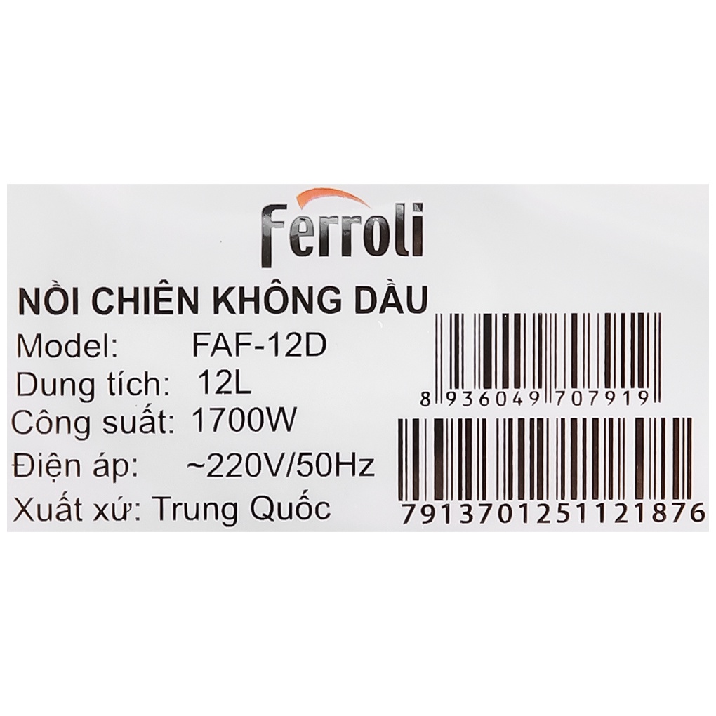 [Mã ELHADEV giảm 4% đơn 300K] Lò chiên không dầu Ferroli FAF-12D 12 lít