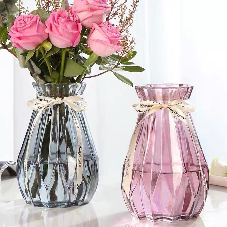 Lọ hoa thuỷ tinh đa giác tặng kèm nơ bình hoa cao cấp cổ nhỏ