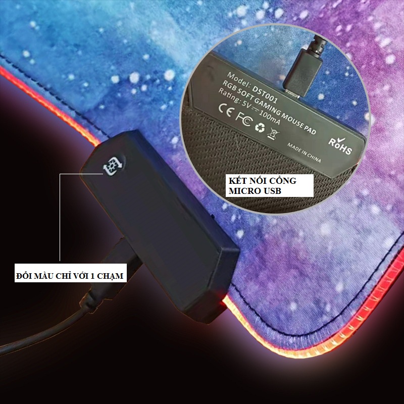 Giới thiệu Lót chuột LED RGB, PAD chuột cỡ lớn siêu dày, bền chống nước, chống trượt size 90x30, 80x30