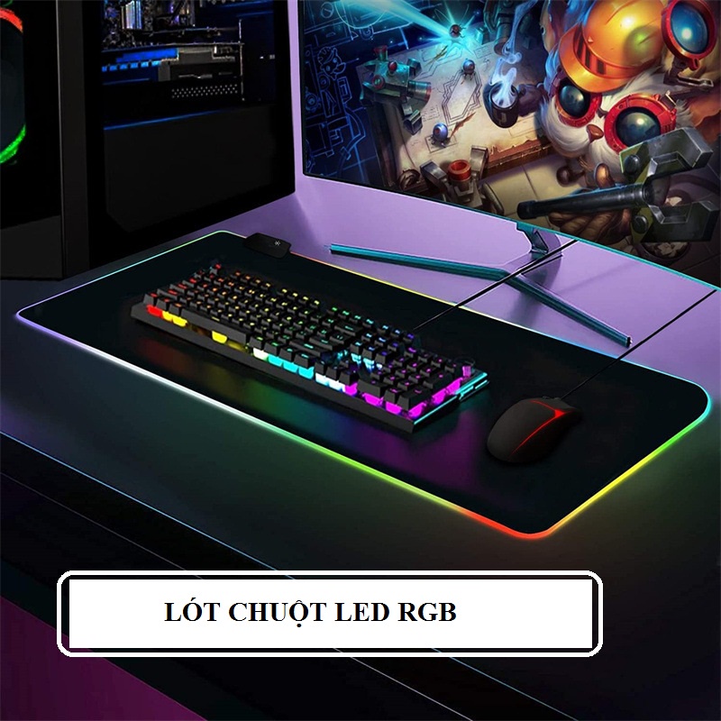 Lót chuột LED RGB, PAD chuột, lót chuôt gaming cỡ lớn, Mặt Vải Nhung Mềm Mượt