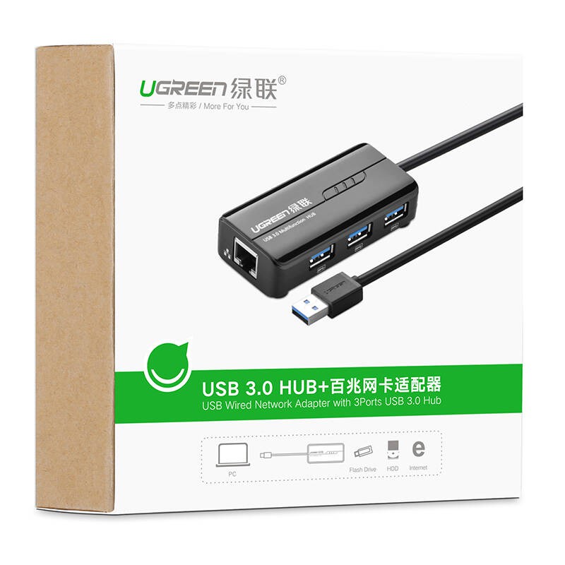 Máy tính & Laptop > Phụ Kiện Máy Tính > Bộ chia cổng USB & Đọc thẻ nhớ || HUB USB 3 cổng 3.0 kèm cổng mạng LAN 10/100 Mbps Ethernet UGREEN CR103 - Hàng phân phối chính hãng - Bảo hành 18 thángCòn hàng