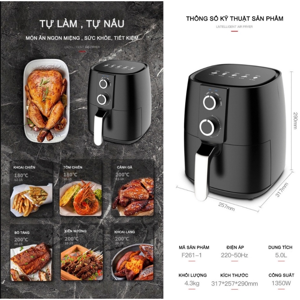 Công suất: 1350WChiên không dùng dầu, không khói