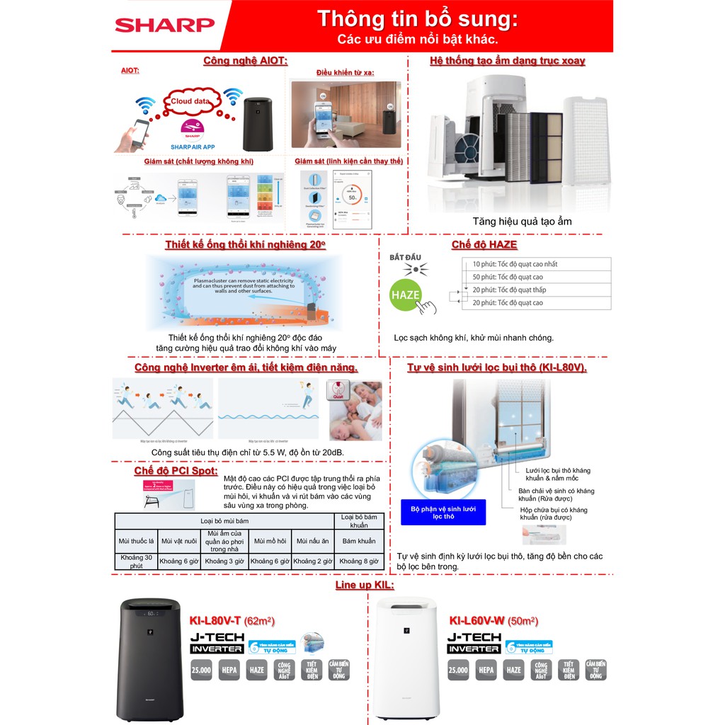 Giới thiệu Máy lọc không khí tạo ẩm Sharp KIL60VW Inverter diện tích 50m2 Hàng chính hãng