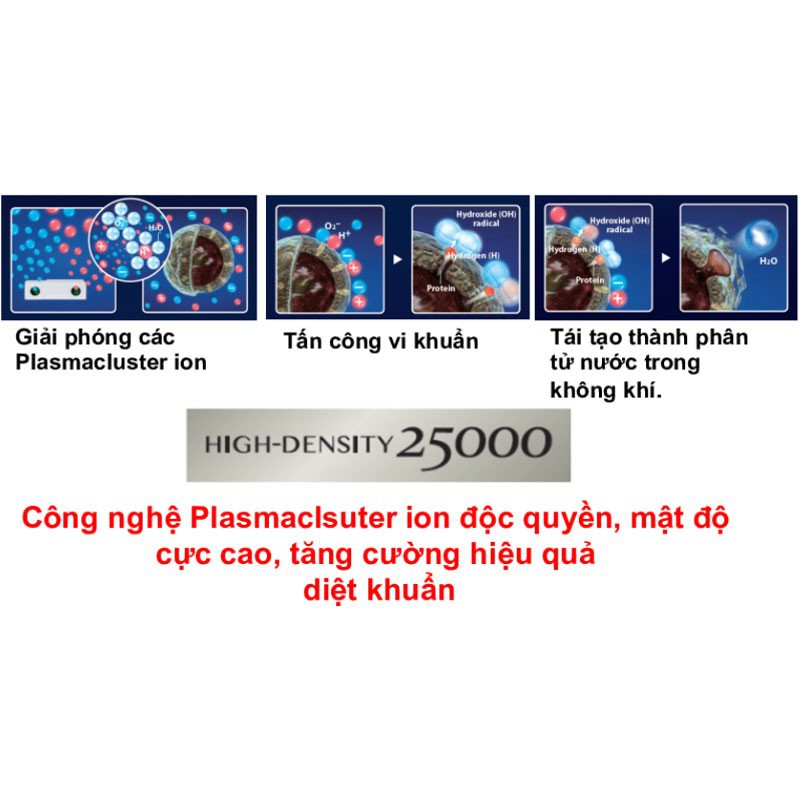 Chức năng ion hóa Plasmacluster bảo vệ bạn khỏi virus, vi khuẩn, tác nhân gây dị ứng và nấm mốc, tĩnh điện với mật độ giải phóng ion cực cao lên đến 25000 ion/cm3.
