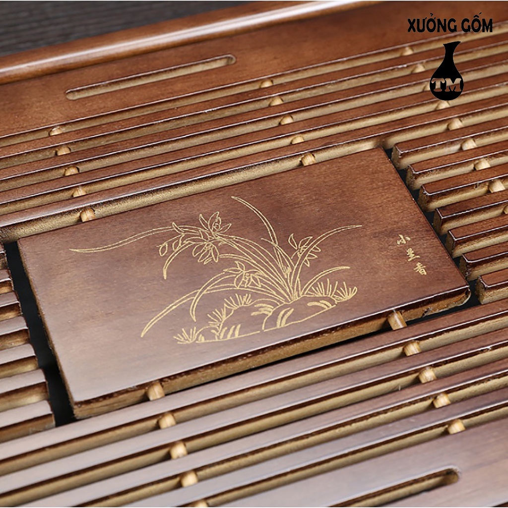 Khay Trà Tre Khắc Lan Đựng Ấm Chén Có Khay Hứng Nước Thừa Xưởng Gốm TM Bát Tràng