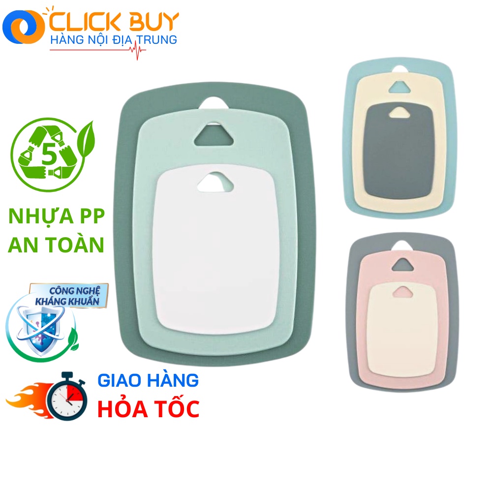 Bộ 3 Thớt Nhựa Kháng Khuẩn Sang Xịn Mịn Mặt Thớt Chống Trơn Trợt Cao Cấp