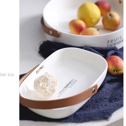 Mô tả chi tiết :Khay sứ đựng đồ ăn có tay cầm bằng da cao cấp dùng decor phụ kiện chụp ảnh món ăn