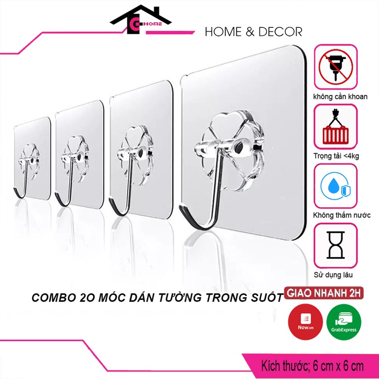 combo 20 móc dán tường trong suốt,decor phòng ngủ [Thánh Chịu Lực] MÃ TS20