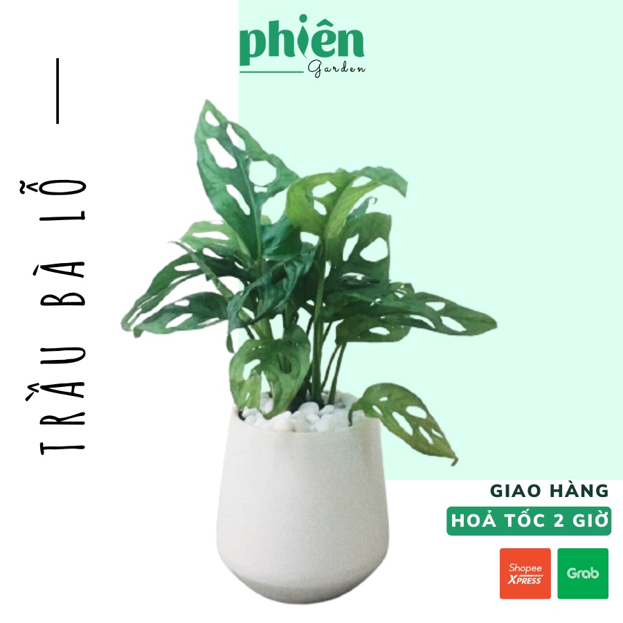 Mô tả: Cây Trầu Bà lỗ hay còn gọi là trầu bà lá rách hay trầu bà cửa sổ với ưu điểm và sinh trưởng tốt trong môi trường hoàn toàn trong bóng râm nên được ưu ái đặt trang trí rất nhiều ở bàn học, bàn làm việc, trong nhà, trong văn phòng hay tặng quà