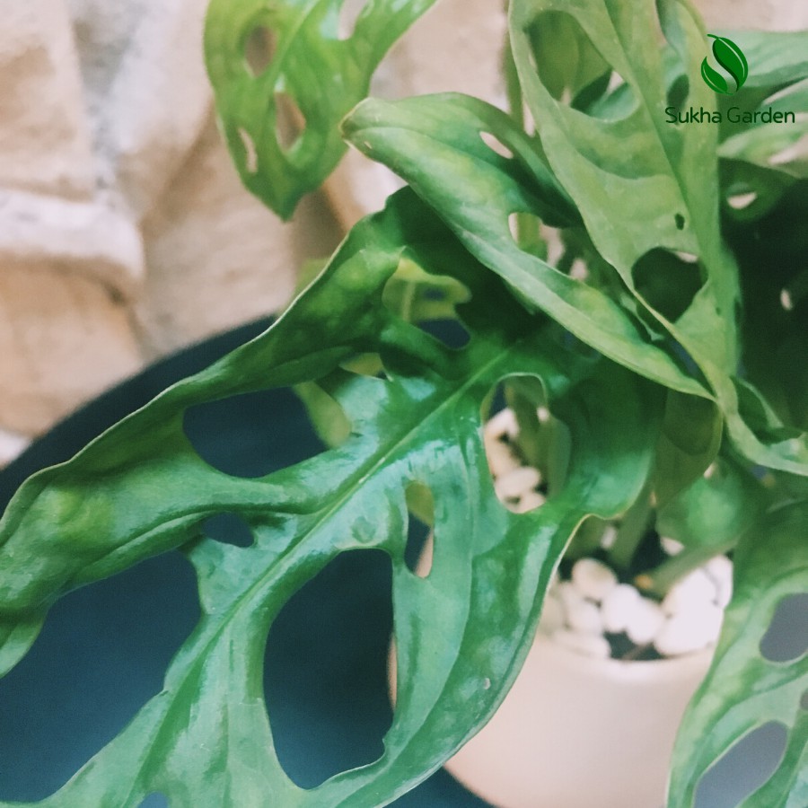 Nhà cửa & Đời sống > Làm vườn > Cây cảnh || Cây Trầu Bà Lỗ Monstera adansonii để bàn kèm Chậu gốm tráng menCòn hàng