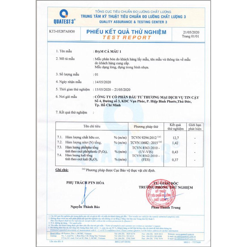 Phân cá hữu cơ – Đạm cá cung cấp chất hữu cơ được thủy phân từ cá nước ngọt, giúp cho cây trồng dễ hấp thu chất đạm hữu cơ.