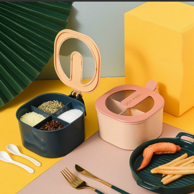 HỘP GIA VỊ 4 NGĂN NẮP TRONG KÈM THÌA Có Nắp Đậy Cao Cấp MỚI 2020