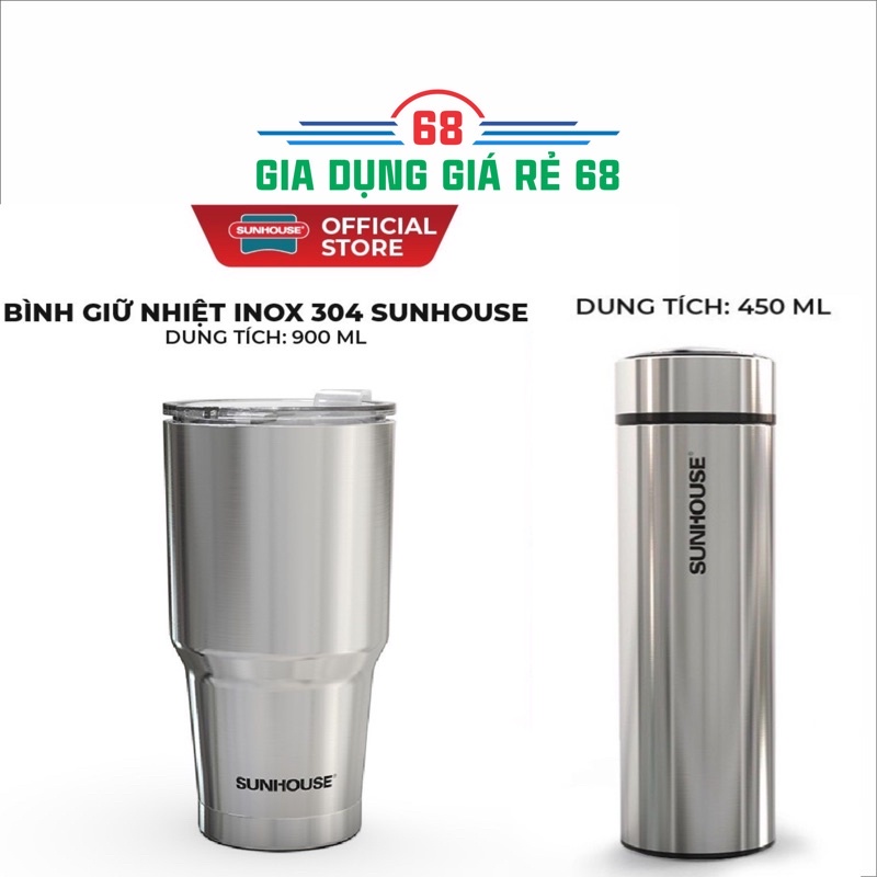 BÌNH GIỮ NHIỆT INOX 304 SUNHOUSE 900ML Và 450ML( BH Chính Hãng 12T)