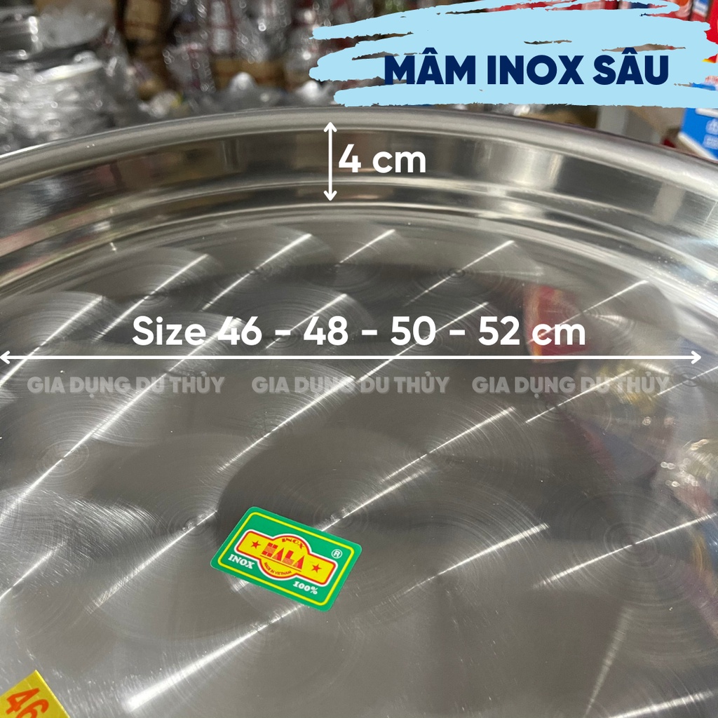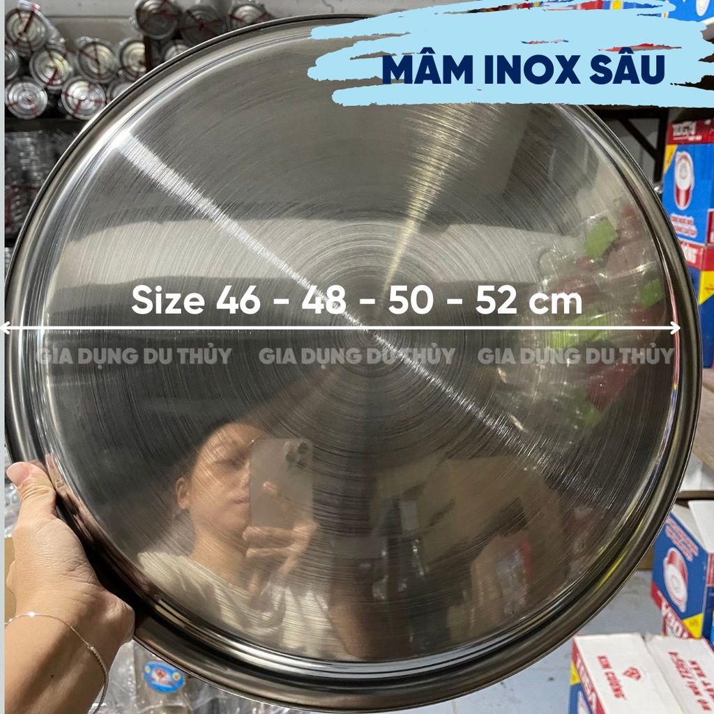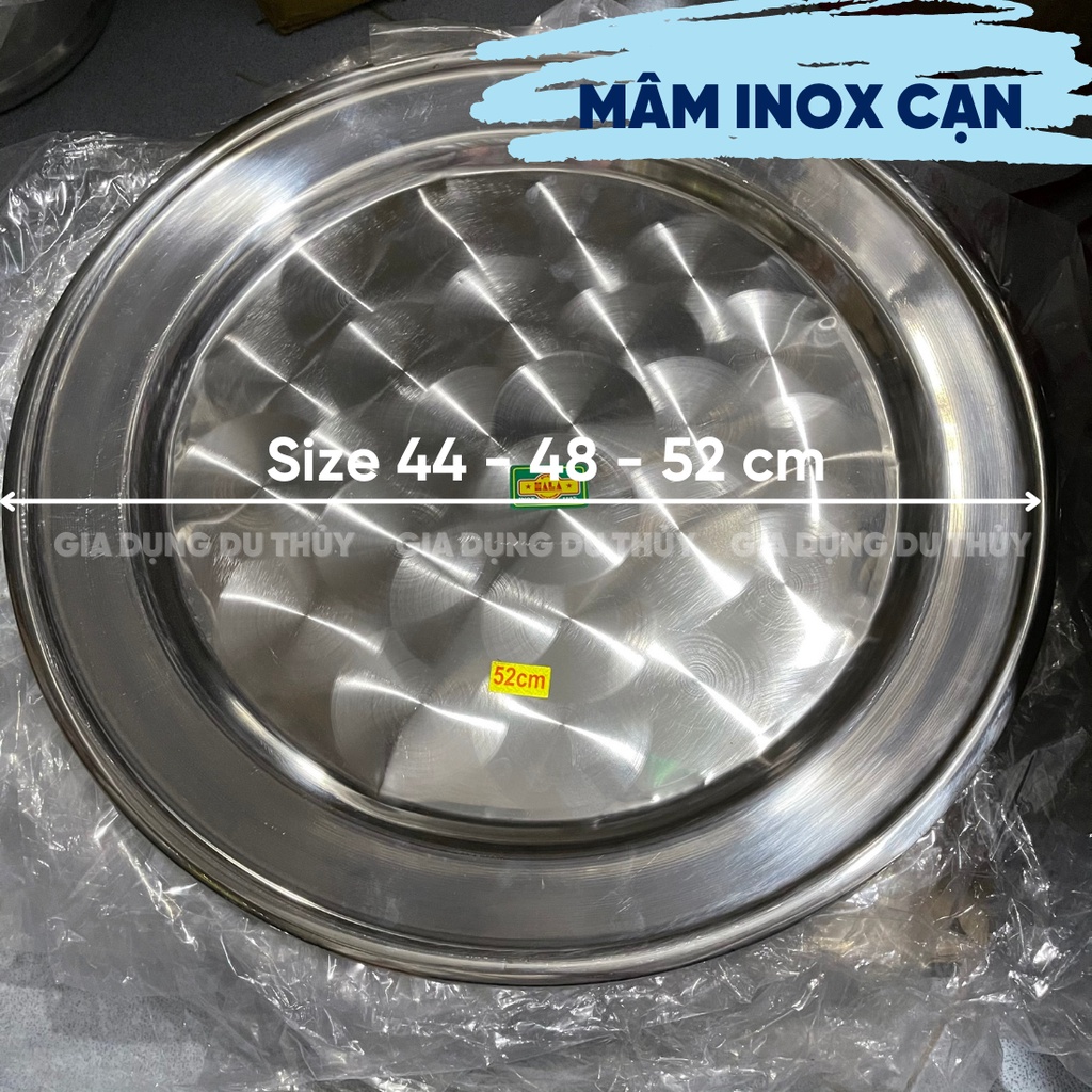 Mâm inox tròn size 44 - 52 cm, dùng làm mâm phục vụ, mâm đựng cơm canh chất liệu inox sáng bóng của gia dụng du thủy