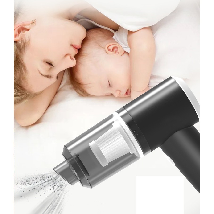 Máy hút bụi mini không dây cầm tay có LED cho xe ô tô, xe hơi gia đình M02