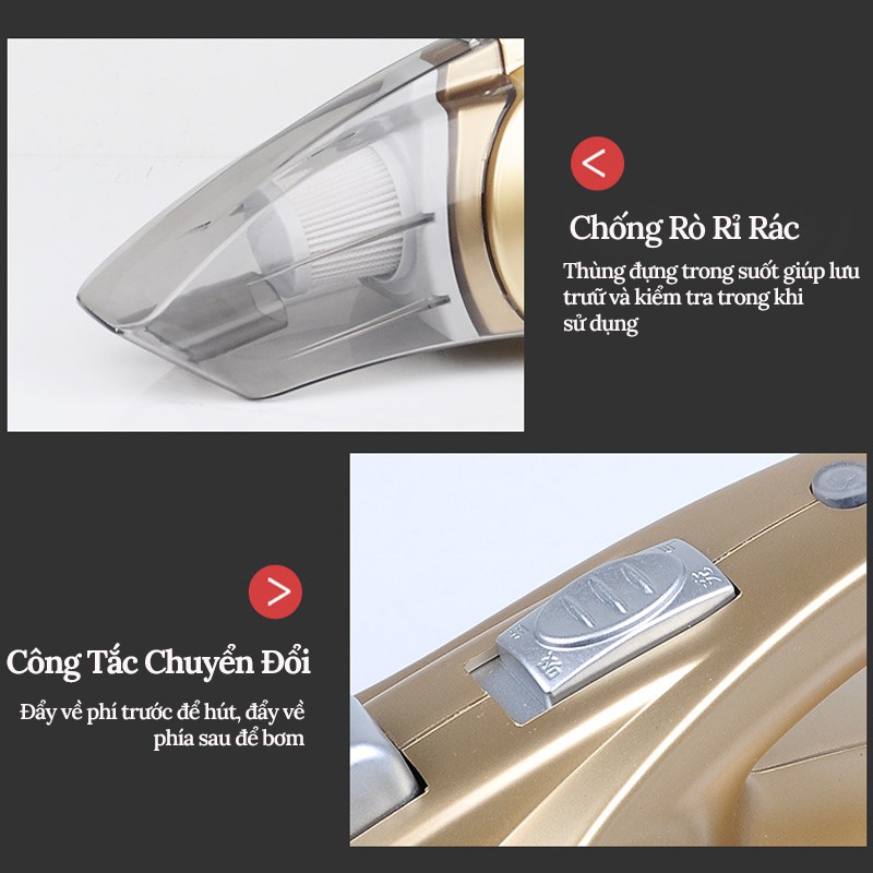 ✅ 2、Chỉ cần một thao tác đơn giản là kết nối với nguồn điện từ tẩu thuốc trên ô tô là bạn đã có thể trải nghiệm ngay những tính năng đột phá của nó: hút bụi chuyên nghiệp, bơm hơi lốp xe cực mạnh, đèn pin chiếu sáng tiện lợi và đo áp suất lốp.