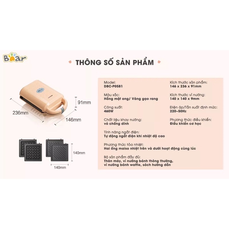Giới thiệu Máy làm bánh đa năng 2 in 1 Bear DBC-P05B1, bao bì không đẹp