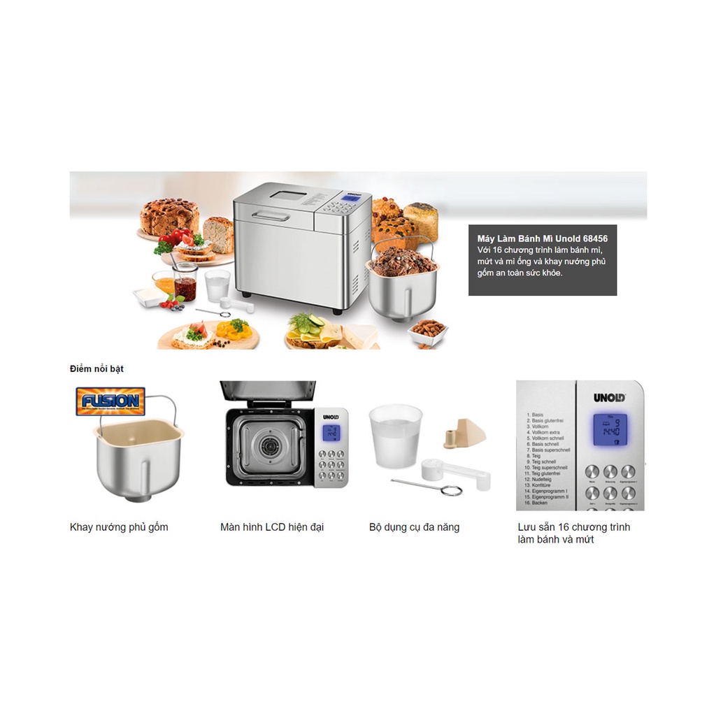 Máy làm bánh mì tự động Unold 68456 cài sẵn 16 chế độ làm bánh